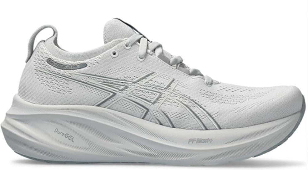 The GEL-NIMBUS™ 26 shoe has soft cushioning properties to help you feel like you're landing on clouds. This design is revamped to help create a softer and smoother running experience, providing dynamic comfort for the duration of your run to help you run further, longer. Suitable for every day, easy runs for all runners looking for a highly cushioned, neutral shoe. A soft engineered knit upper comfortably wraps your foot while supplying advanced ventilation. Additionally, the knit tongue and collar help provide a soft and supportive feel. By using FF BLAST™ PLUS ECO cushioning, this trainer creates a lighter and softer cushioning experience with less of an impact on the environment. Lastly, HYBRID ASICSGRIP™ outsole combines ASICSGRIP™ rubber and AHARPLUS™ materials to help provide advanced grip for various terrains and