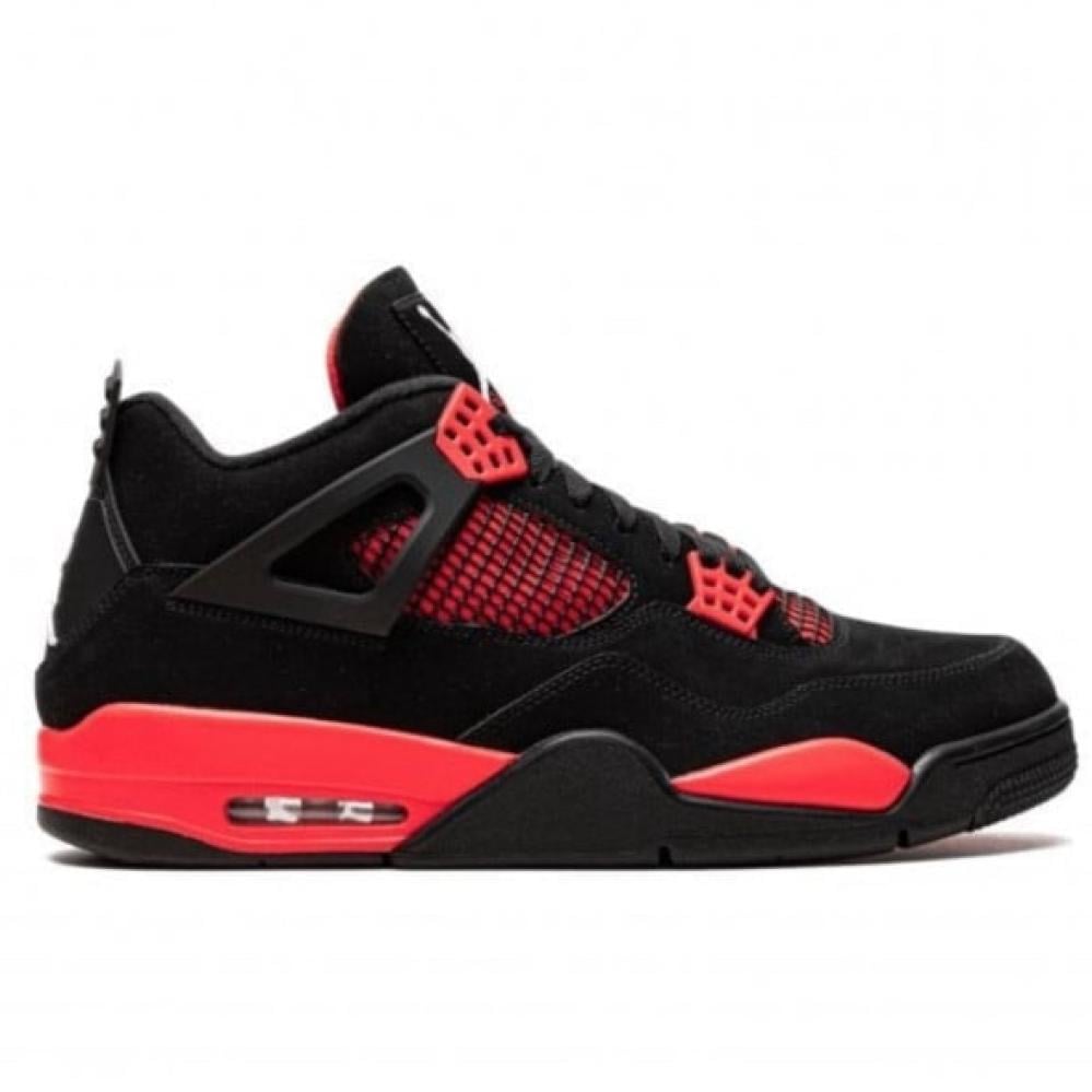 سنيكر 'إير جوردن 4 ريترو' من تصميم jordan باستخدام الجلد، يتميز هذا المنتج بمقدمة قدم بيضاوية وغلق برباط شبيك أمامي ونقشة الماركة على اللسان ونعل داخلي بعلامة تجارية ودعامة كاحل بشعار ونعل مطاطي.
