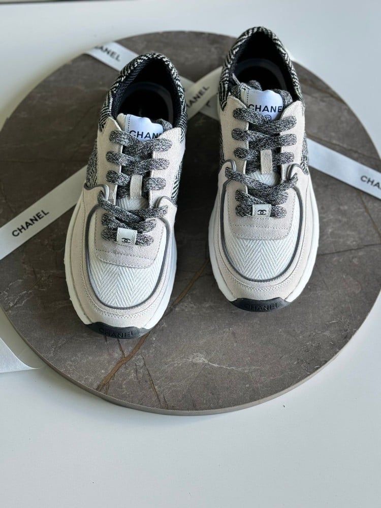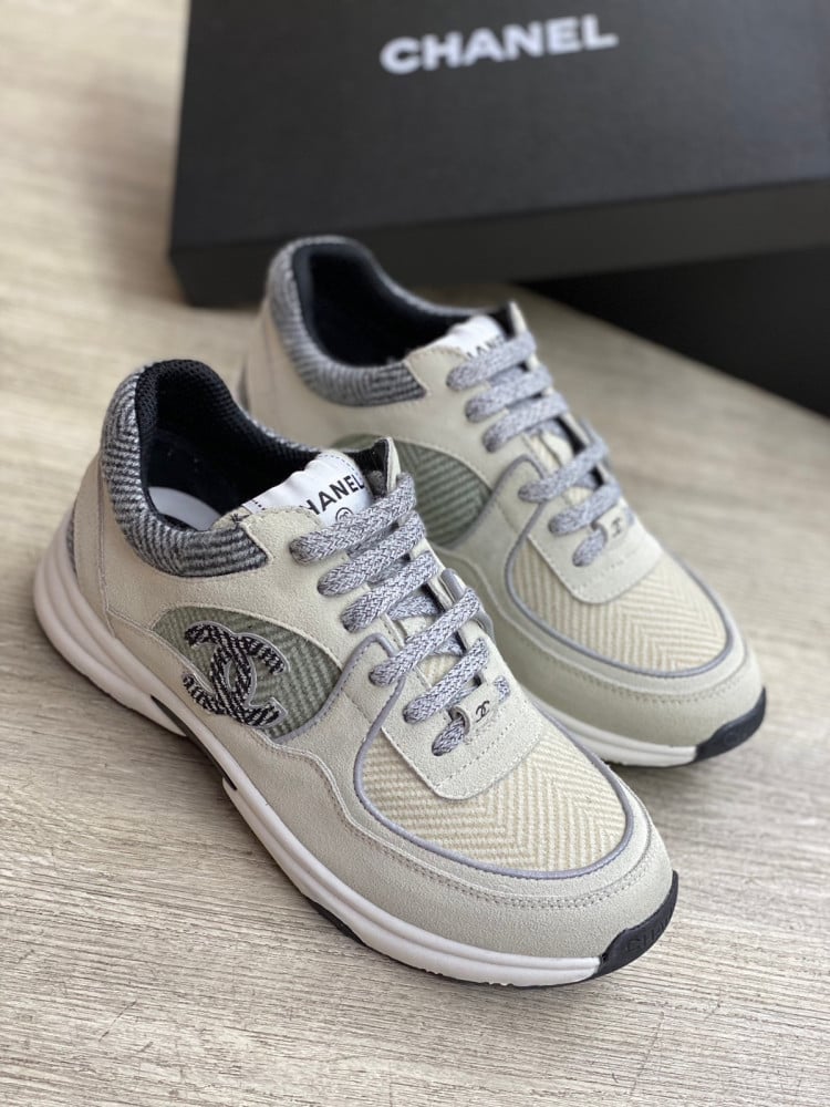 Sneakers Fabric & Suede Calfskin Ivory, Gray & White